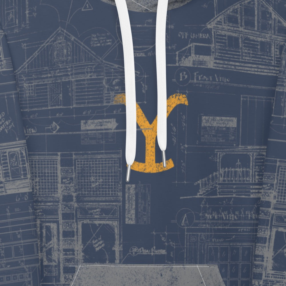 Explore the architectural beauty of the Yellowstone Ranch with our Historic Blueprint Hoodie, showcasing the distinctive structures that make the ranch iconic.