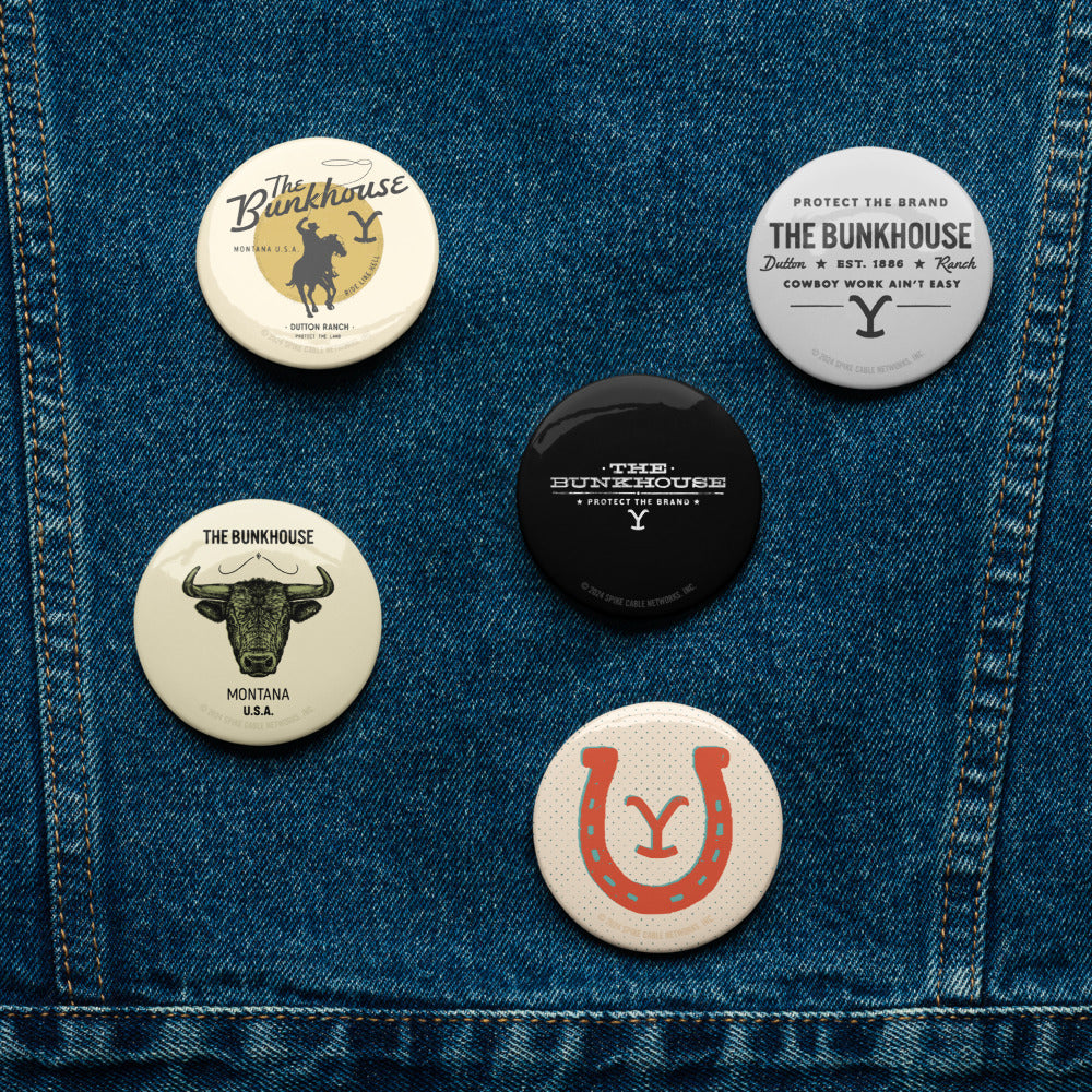 Bring a touch of the Dutton Ranch to your wardrobe with the Yellowstone Bunkhouse Pin Set. This exclusive pin set features designs inspired by the iconic bunkhouse from the hit series, perfect for adding a rugged, Western flair to your jackets, hats, or bags. Each pin showcases intricate details that reflect the authentic Yellowstone spirit.