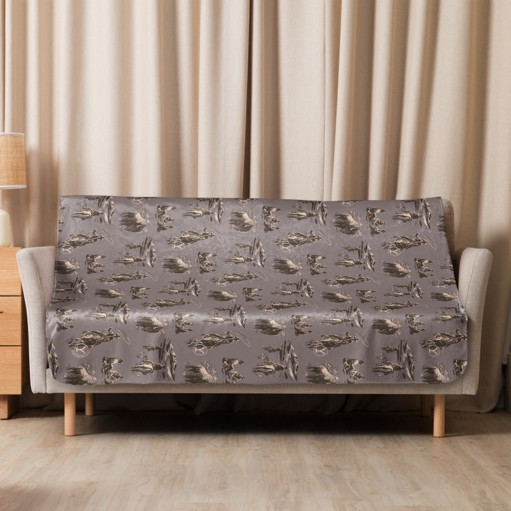 Yellowstone Cowboy Pattern Premium Sherpa Blanket