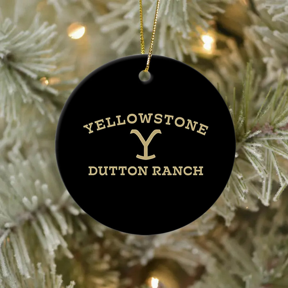 Get your tree holiday ready by hanging this classic Yellowstone Dutton Ranch Logo Double Sided Round Ceramic Ornament for everyone to see. Featuring the eye-catching Yellowstone Dutton Ranch logo, this ornament is sure to fill all fans of Yellowstone with holiday cheer.- Spruce up your tree this year with this vibrant ornament!