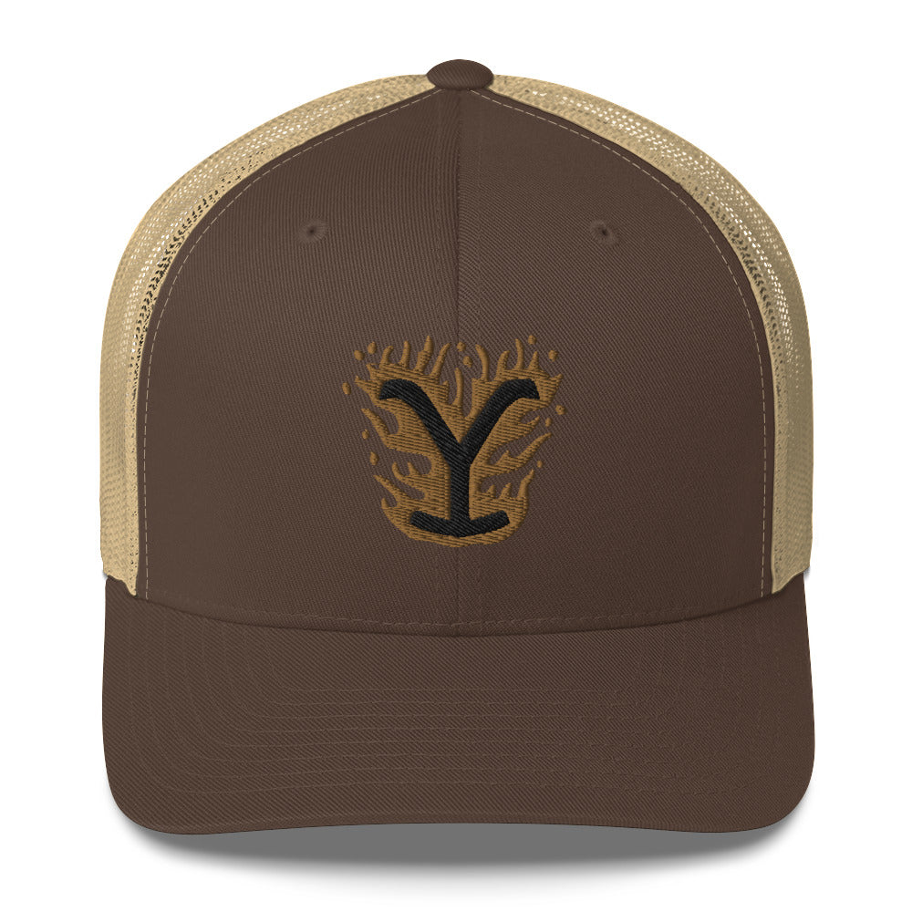 Embrace the fiery spirit of the Dutton Ranch with the Yellowstone Flaming Logo Retro Trucker Hat. Featuring a vibrant flaming logo and a classic trucker style, this hat blends retro aesthetics with modern comfort. The adjustable snap closure and breathable mesh back provide a customizable fit and all-day comfort. Whether you’re on the ranch or out and about, this hat is the perfect way to show off your Yellowstone pride in style.