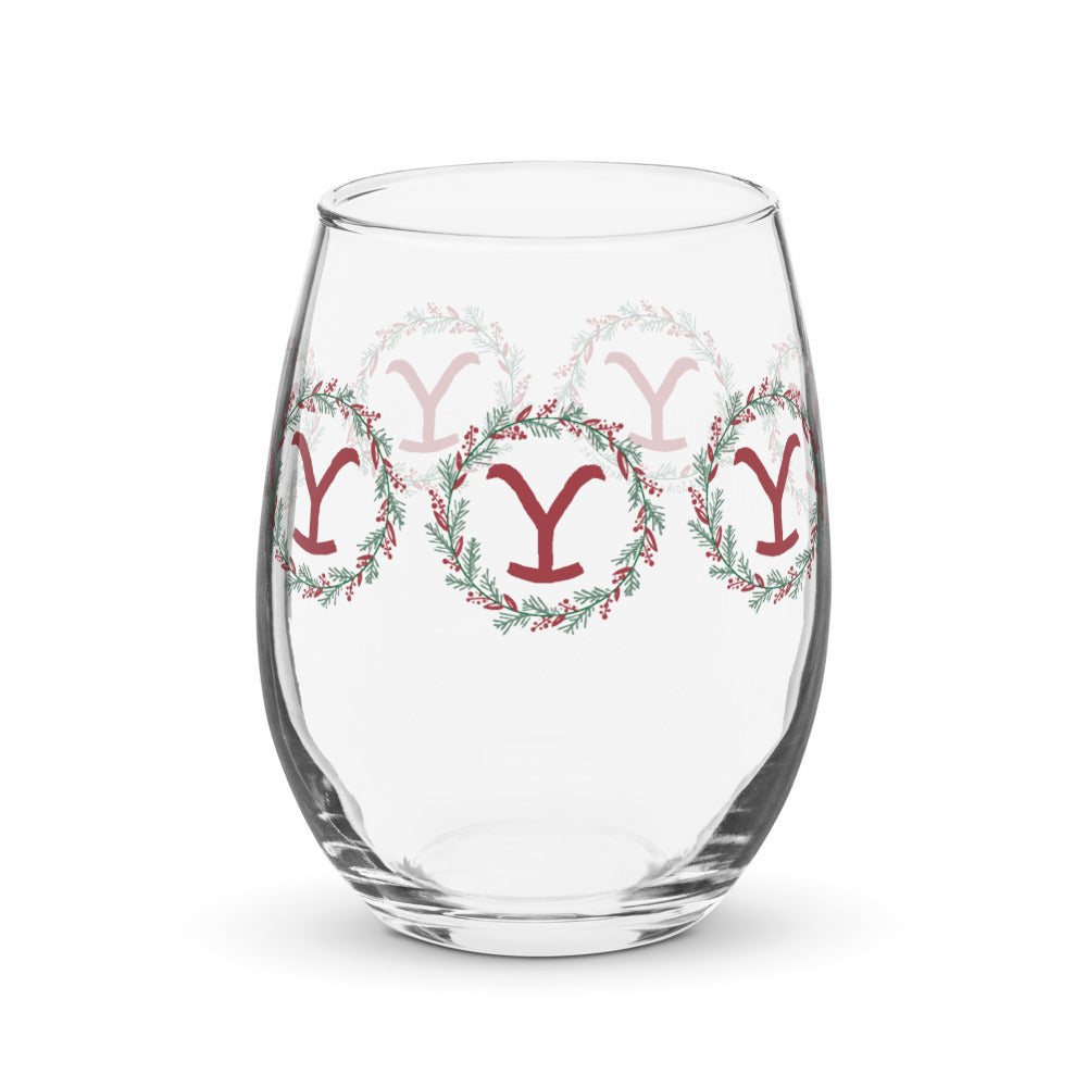 Yellowstone Holiday Wreath Wine Glass