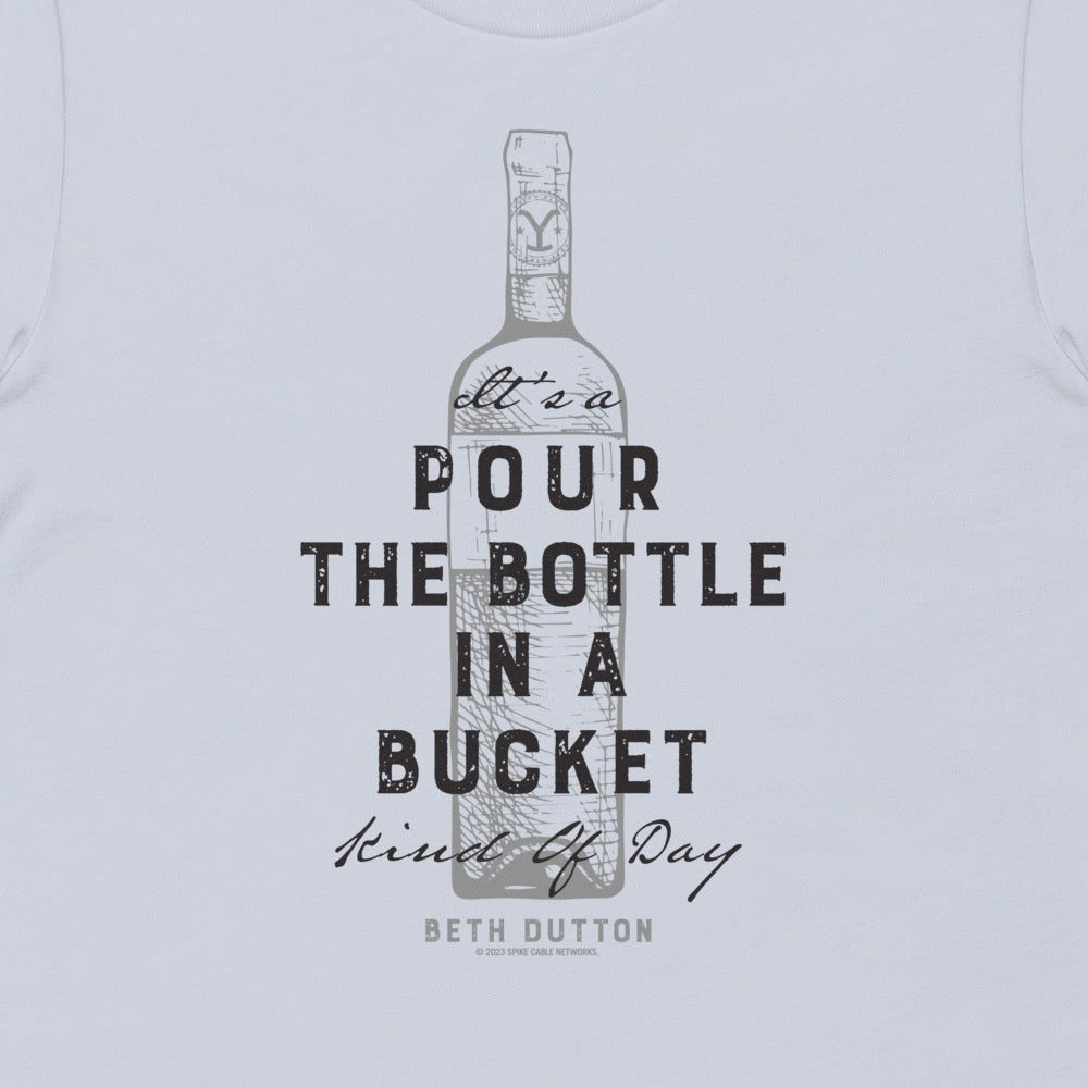 The Yellowstone Pour The Bottle In The Bucket Short Sleeve T-Shirt is the perfect tee for anyone that loves Beth Dutton and Yellowstone. Featuring a fun and unique design with Beth Dutton's quote on the front, this tee is comfortable and casual so you can wear out and about or while binge-watching your favortie series.