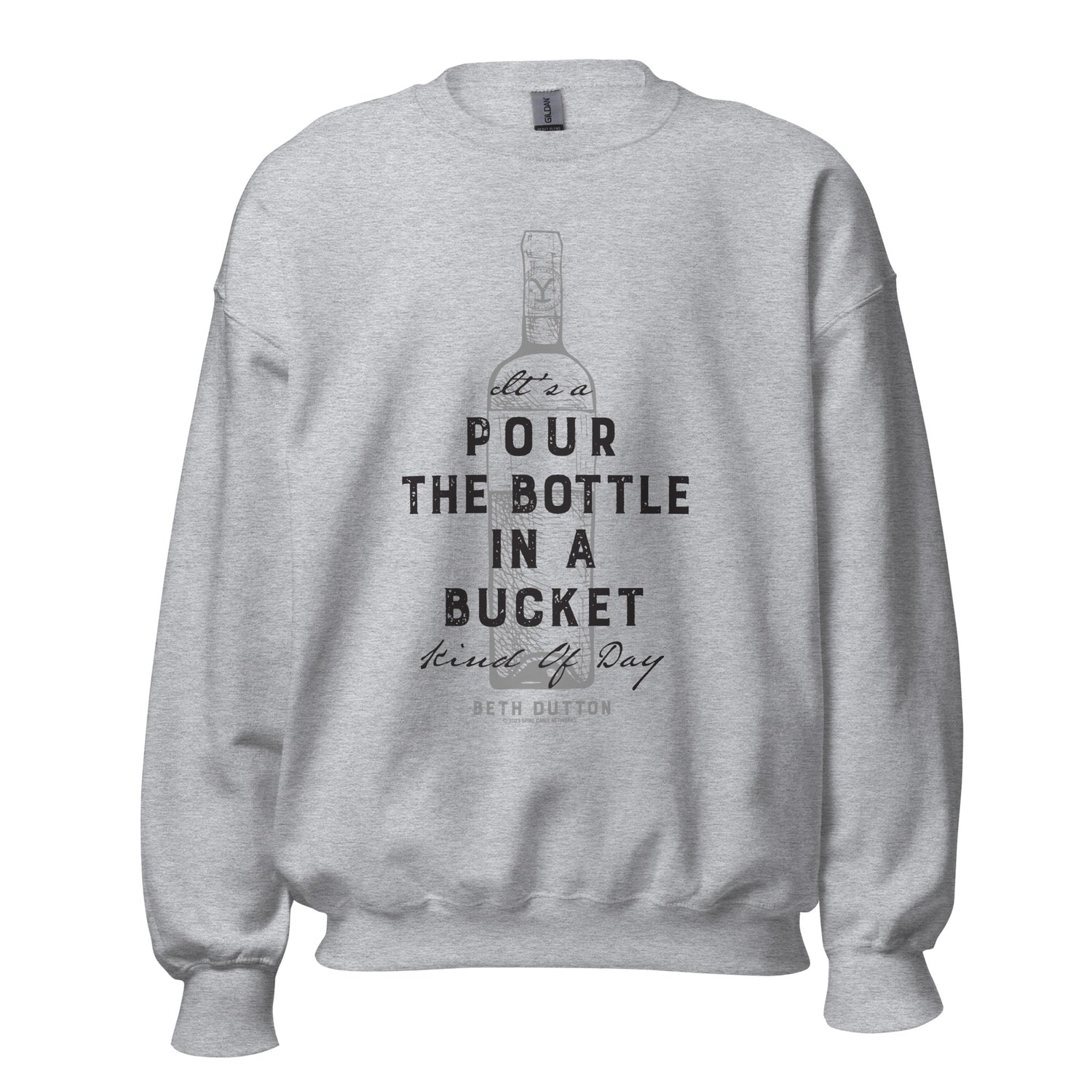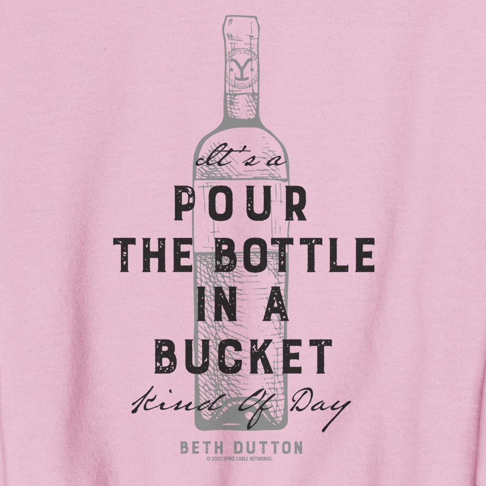 The Yellowstone Pour The Bottle In The Bucket Crewneck Sweathirt is the perfect sweatshirt for anyone that loves Beth Dutton and Yellowstone. Featuring a fun and unique design with Beth Dutton's quote on the front, this sweatshirt is comfortable and casual so you can wear out and about or while binge-watching your favortie series.