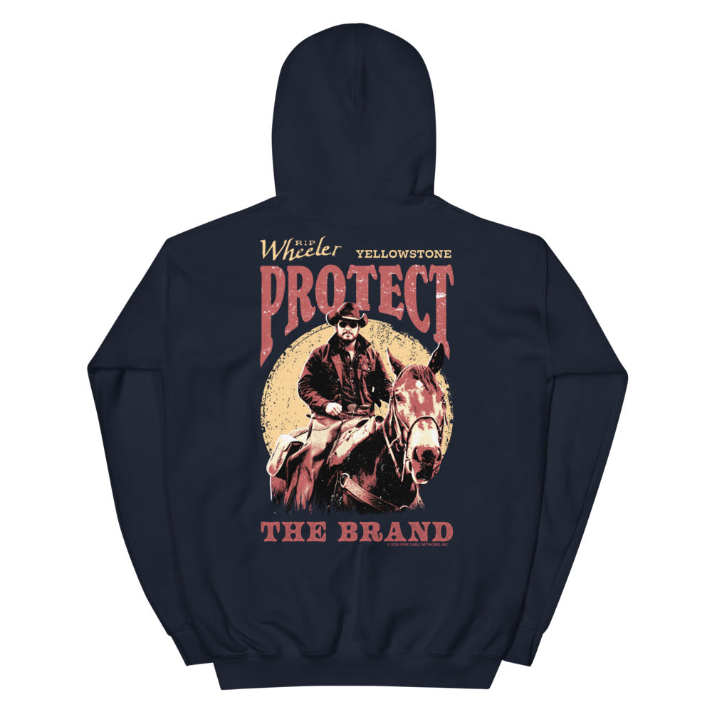 Show your loyalty to the Dutton Ranch with the Yellowstone Protect The Brand Hoodie. This cozy and stylish hoodie features the bold "Protect The Brand" slogan, capturing the fierce spirit and dedication of the Yellowstone ranch hands. Made from high-quality, soft material, it's perfect for staying warm during outdoor adventures or relaxing at home. The hoodie includes a spacious front pocket and an adjustable drawstring hood for added comfort and convenience. Whether you're a die-hard fan of the show or just love a great hoodie, this piece is a must-have addition to your wardrobe. Embrace the rugged charm of Yellowstone and proudly protect the brand with this iconic hoodie.