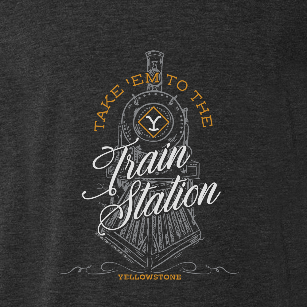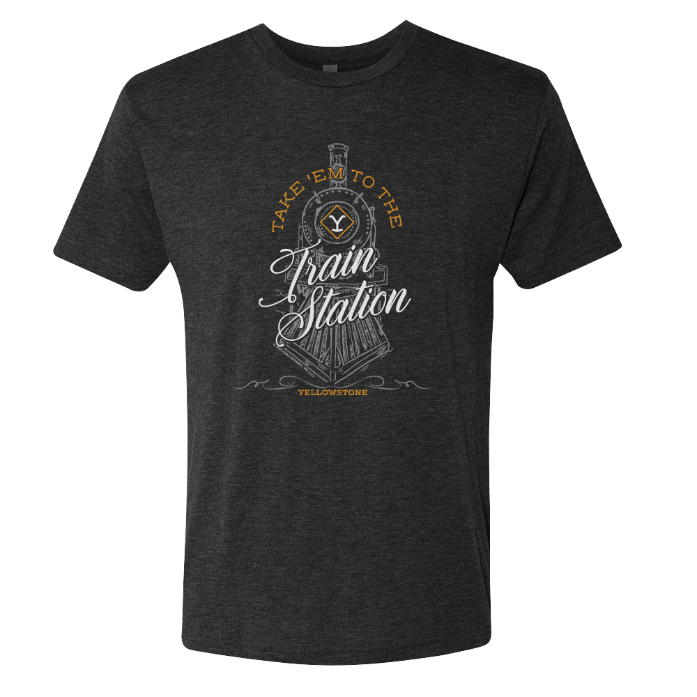 Every true fan of Yellowstone knows about the Train Station. Show your love for the Dutton Ranch with this Yellowstone Take 'Em To The Train Station Adult Tri-Blend T-Shirt. Perfect for Yellowstone superfans, this exclusive t-shirt is great addition to your Yellowstone collection.- Super soft and comfortable tri-blend material will make this shirt your new favorite!