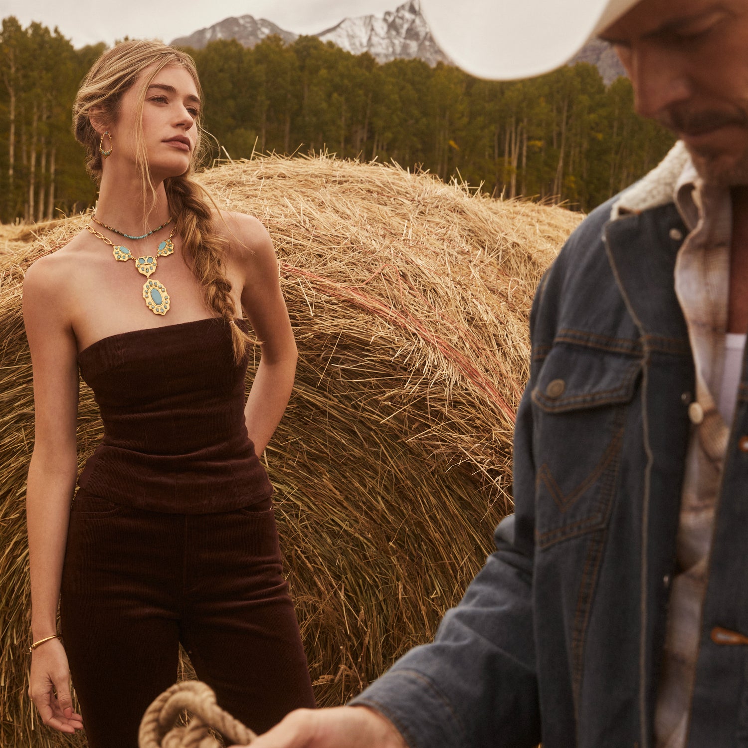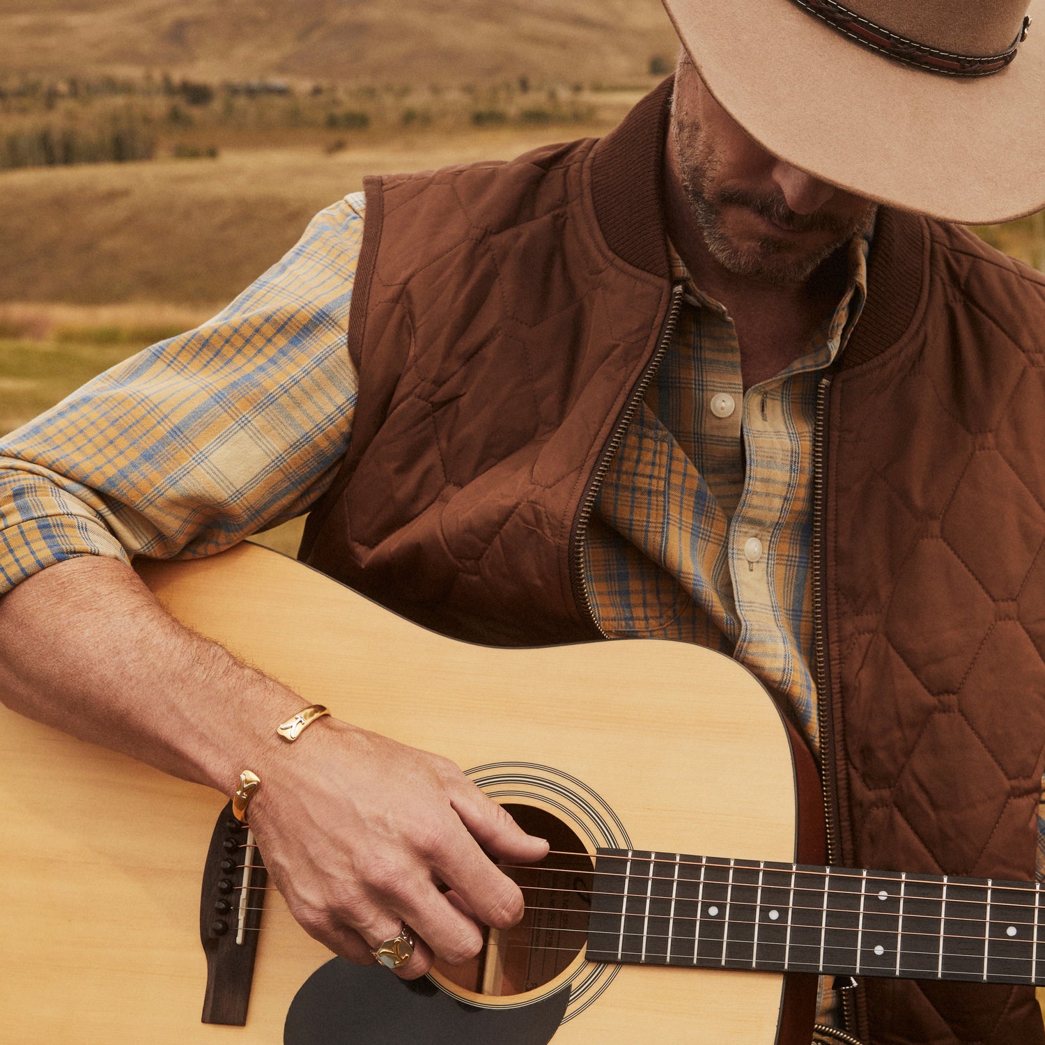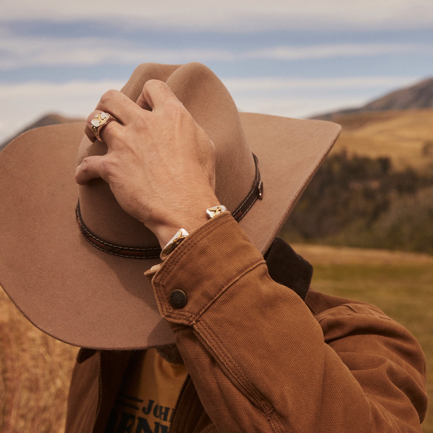 Designed to complement the Beth suite and tell a new chapter of their star-crossed story, the Yellow Rose by Kendra Scott x Yellowstone™ Rip Cuff Bracelet serves as a testament to all your tomorrows in an understated, rugged silhouette. VARIANTS: Silver Ox with Vintage Gold Accents, Vintage Gold with Silver Ox Accents