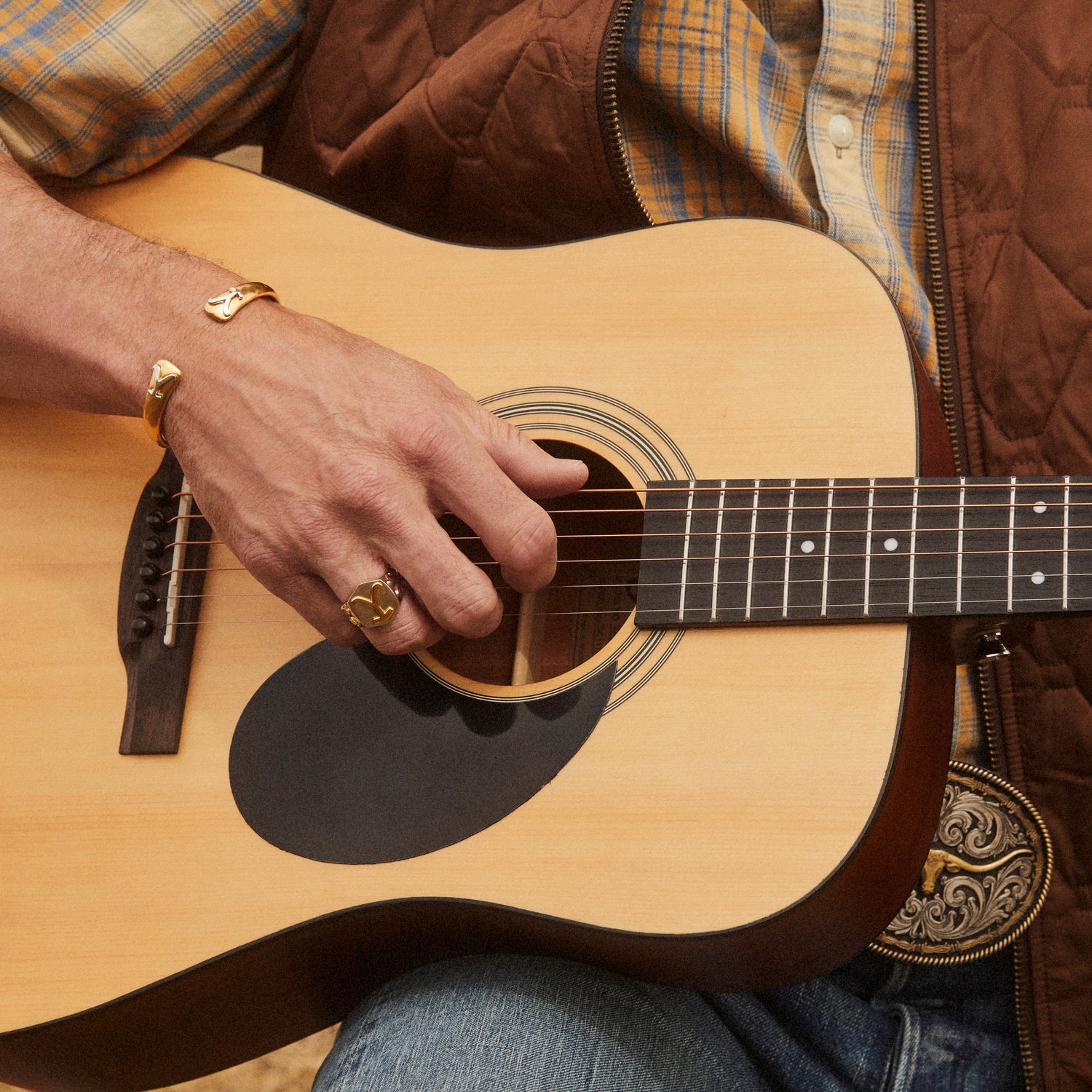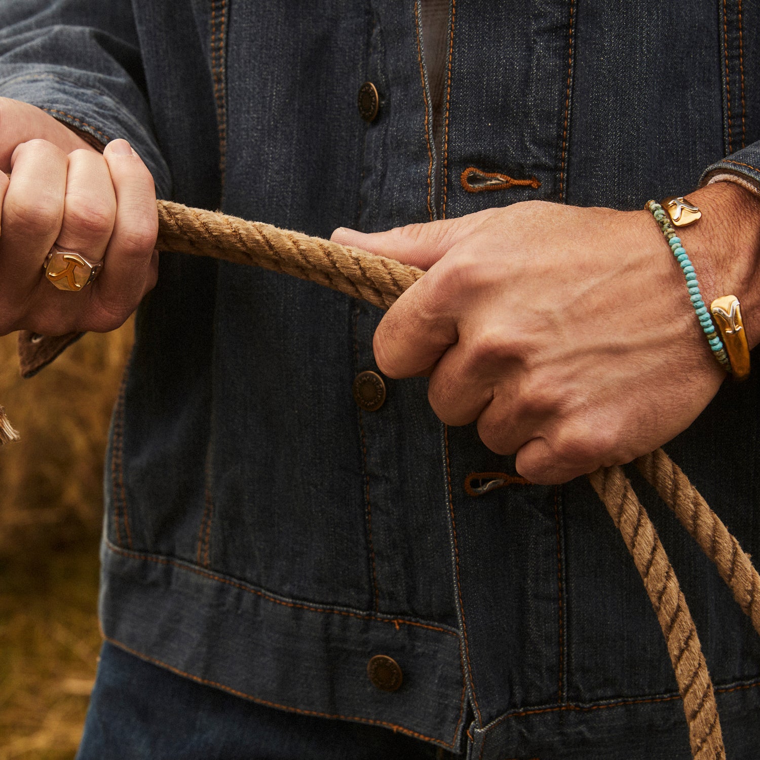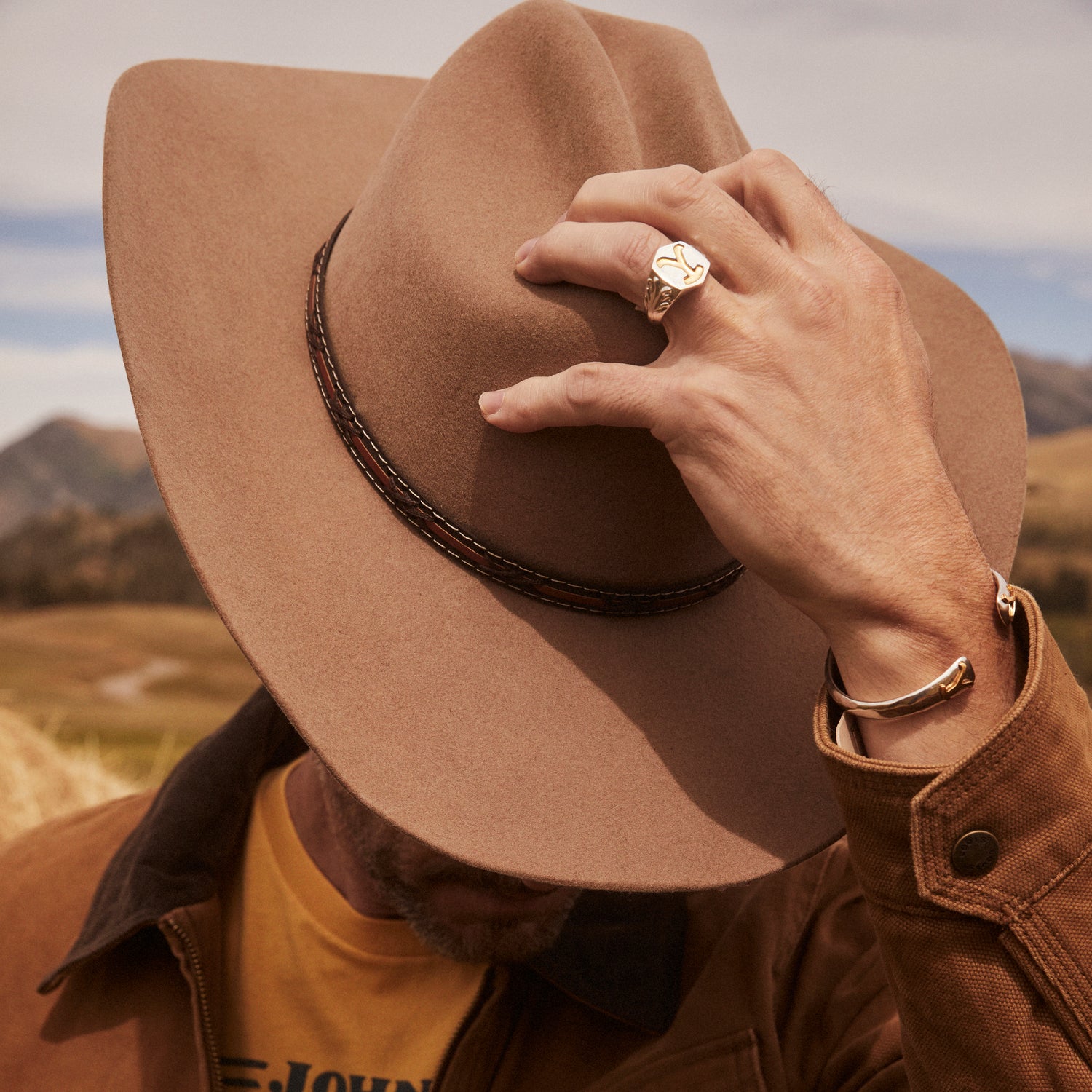 Designed to complement the Beth suite and tell a new chapter of their star-crossed story, the Yellow Rose by Kendra Scott x Yellowstone™ Rip Cuff Bracelet serves as a testament to all your tomorrows in an understated, rugged silhouette. VARIANTS: Silver Ox with Vintage Gold Accents, Vintage Gold with Silver Ox Accents